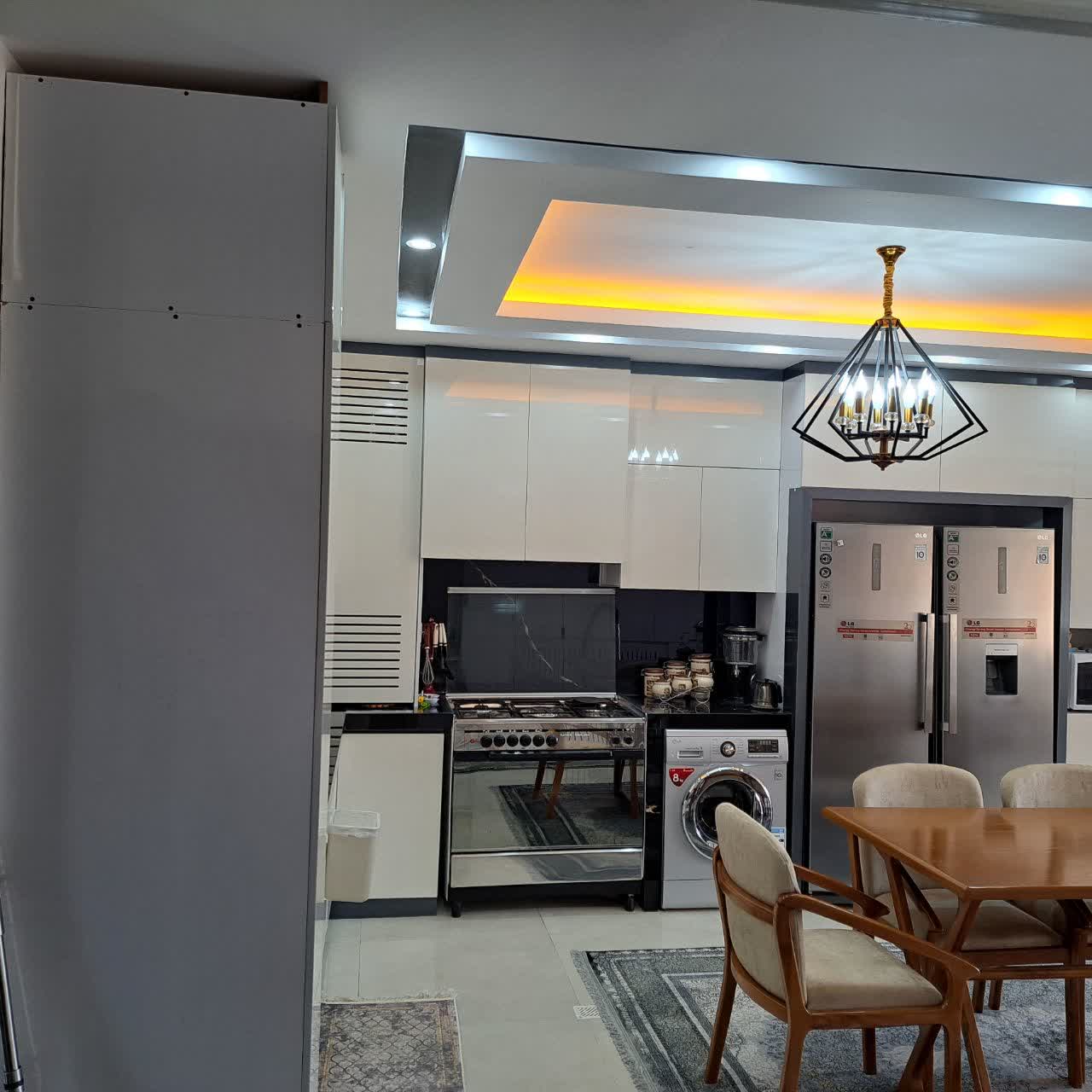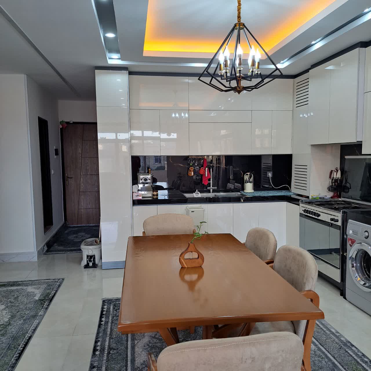 آشپزخانه کاملاً بازسازی شد. کابینت‌ها با متریال چوب روشن و رنگ‌های خنثی انتخاب شدند. چیدمان جدید، فضا را کاربردی‌تر و هماهنگ‌تر با سبک کلی خانه کرد.